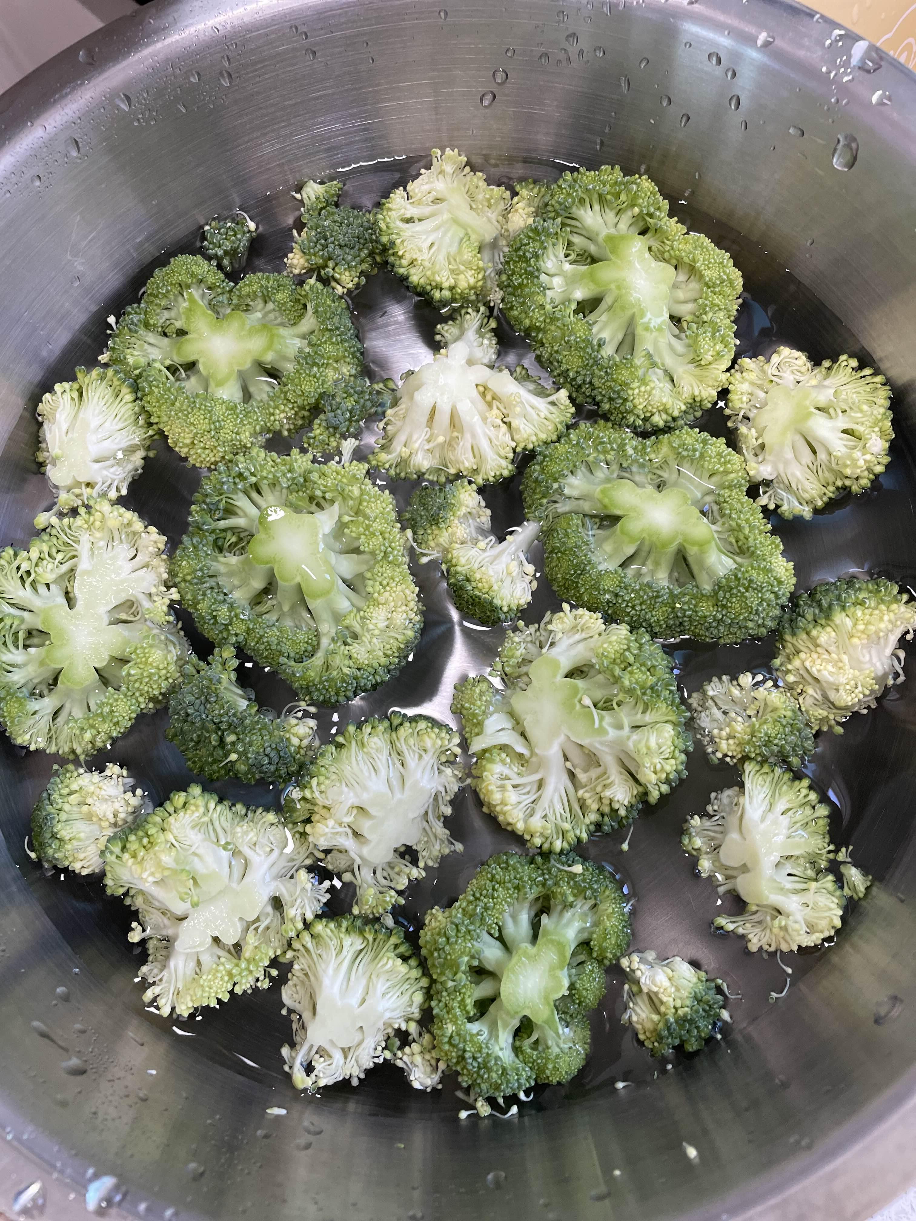 세척이 끝난 브로콜리를 찜기에 넣어줍니다