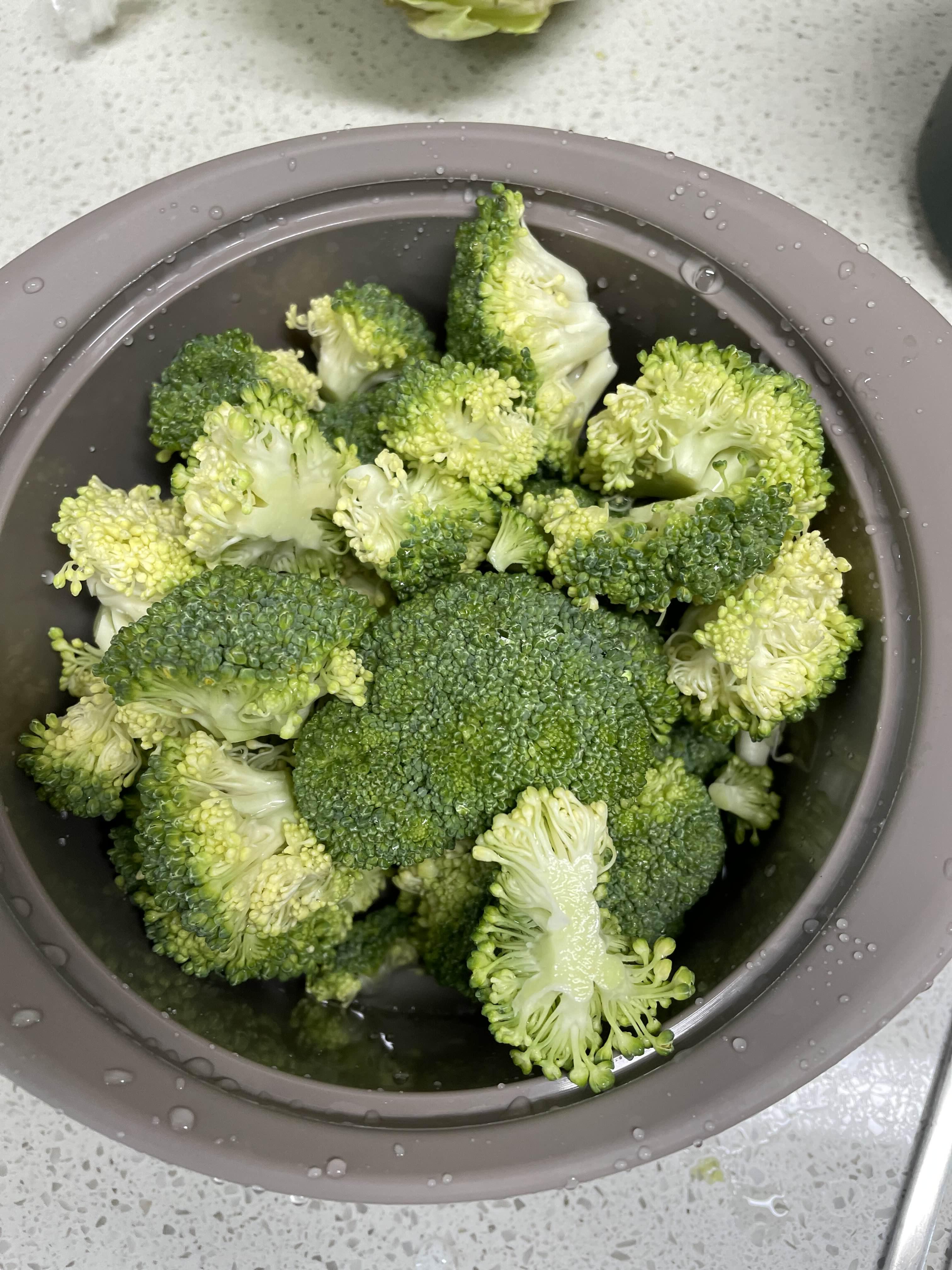다 자른 브로콜리를 세척해 줍니다
