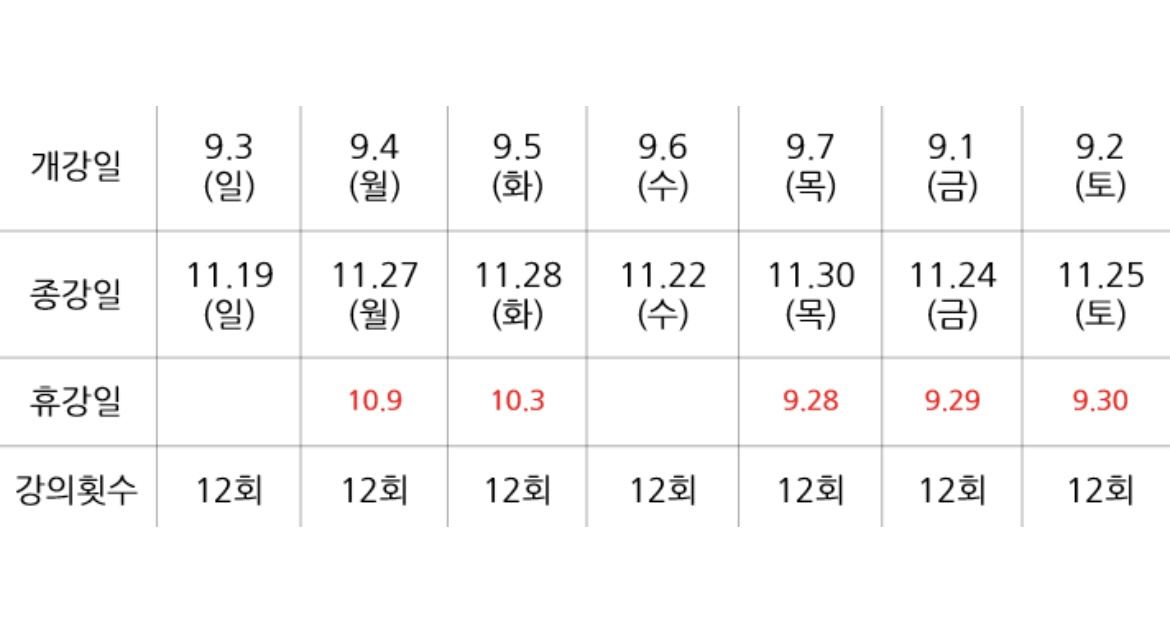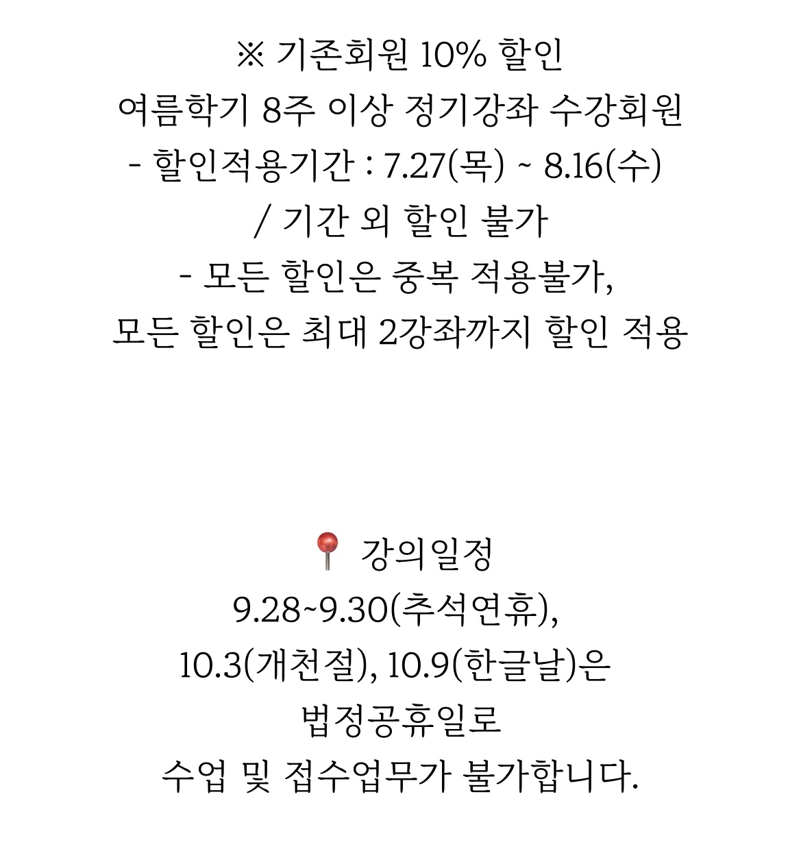 당장 내일 27일 10시부터 수강신청이 이루어집니다