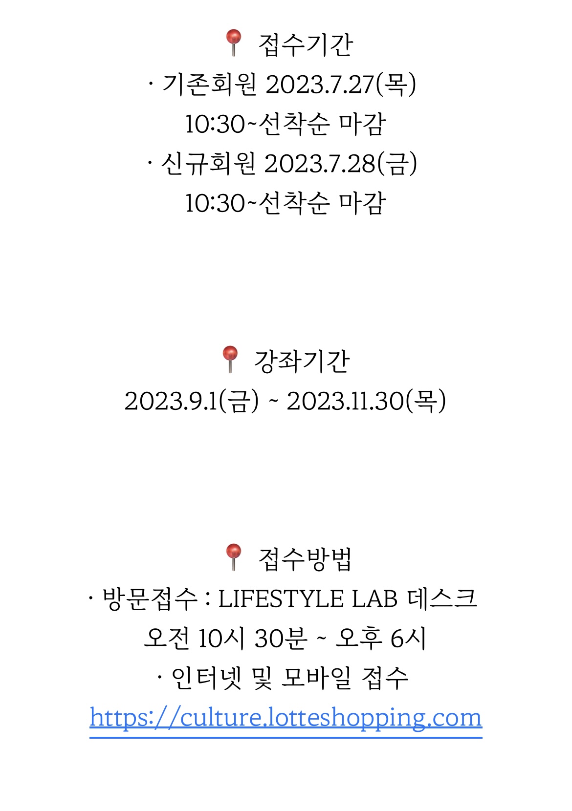 | 롯데백화점 및 이마트 문화센터 가을학기 수강신청 기간 및 방법 (3) | 2024.07.23 |