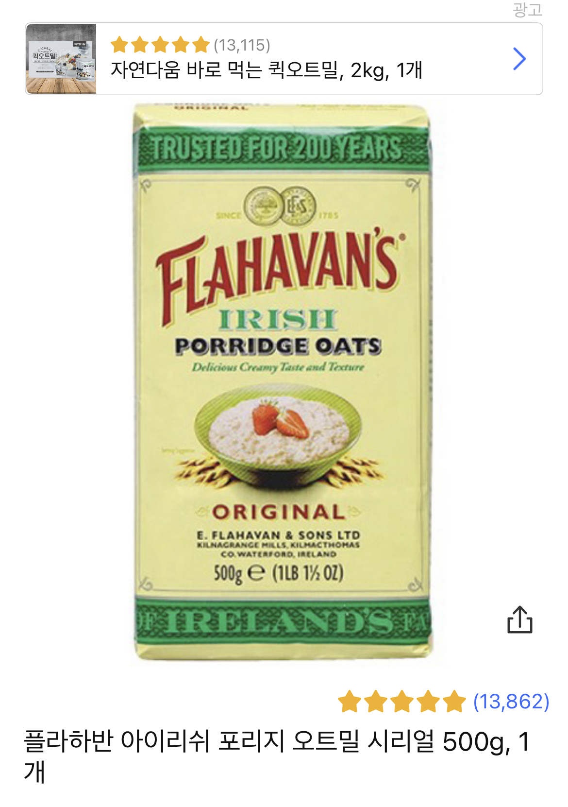 플라하반 오트밀을 많이 구매하시더라고요